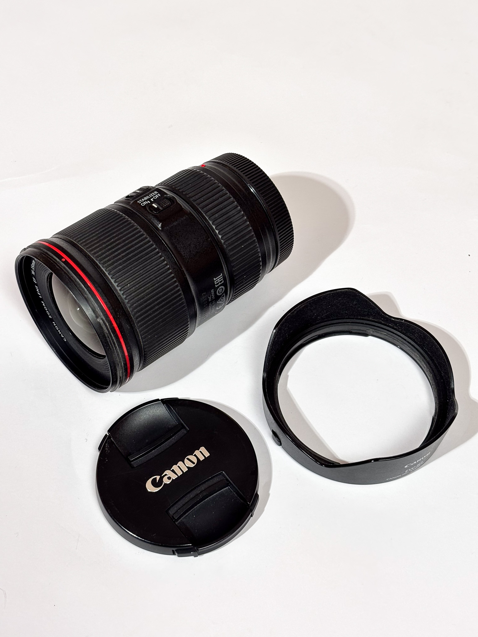 De Canon EF 16-35mm f/4L IS USM. Deze professionele lens uit de L-serie staat bekend om zijn scherpte over het hele beeldveld en de uitstekende ingebouwde beeldstabilisatie (IS).